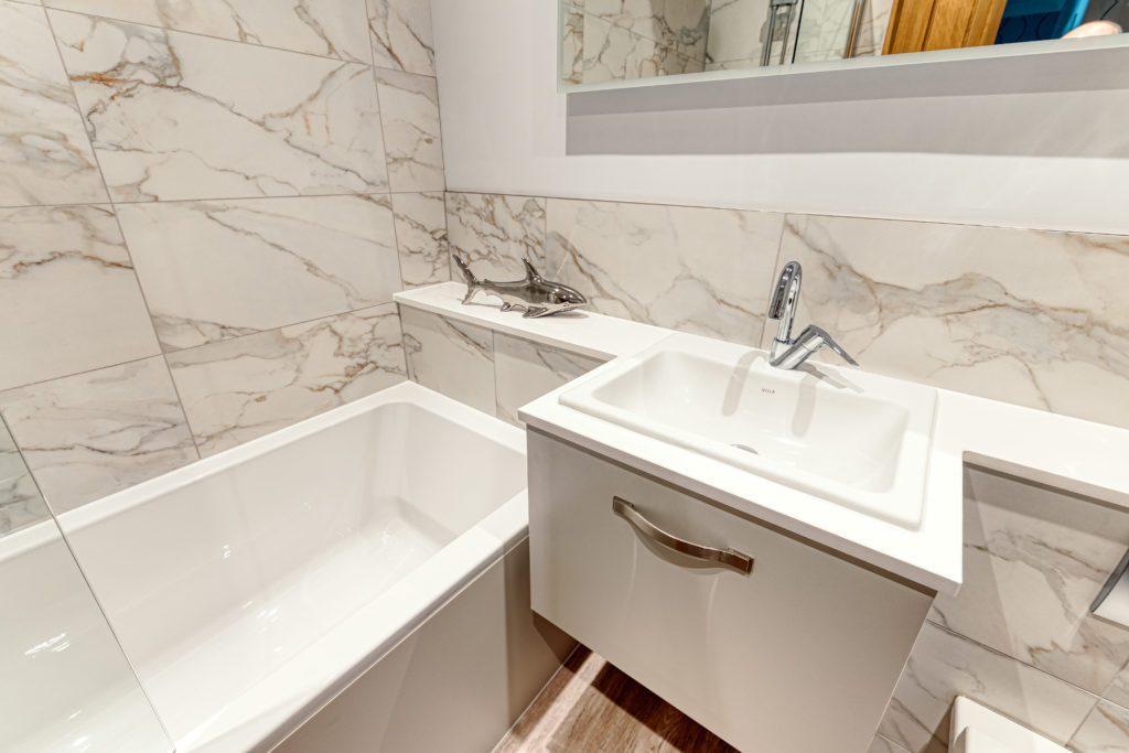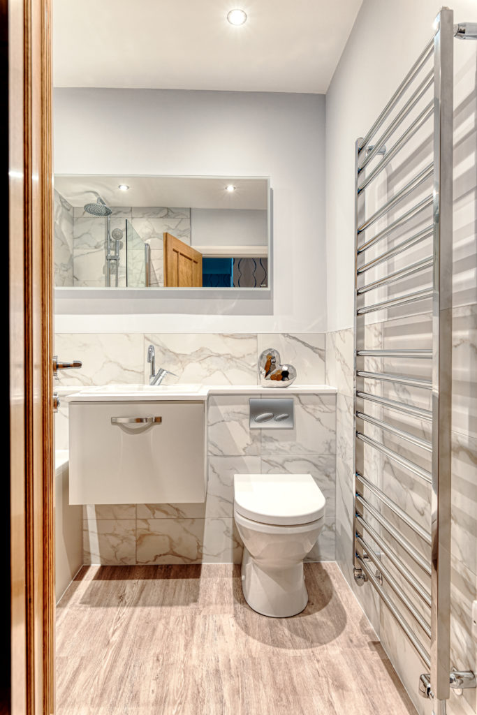 Location: Leek Designer: Allyson Lewis Collection: Roca Bathrooms Finish: Taupe Budget: Under £15k