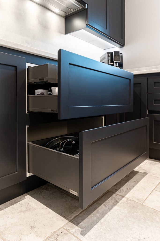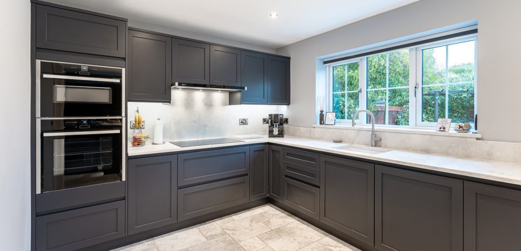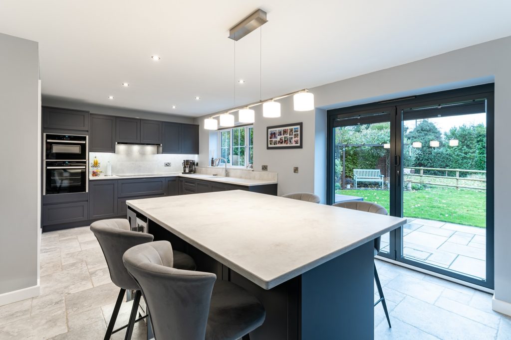 Location: Leek Designer: Allyson Lewis Collection: Caledonia Classic Kitchens Finish: Sumburgh Midnight Budget: £25 - £40K