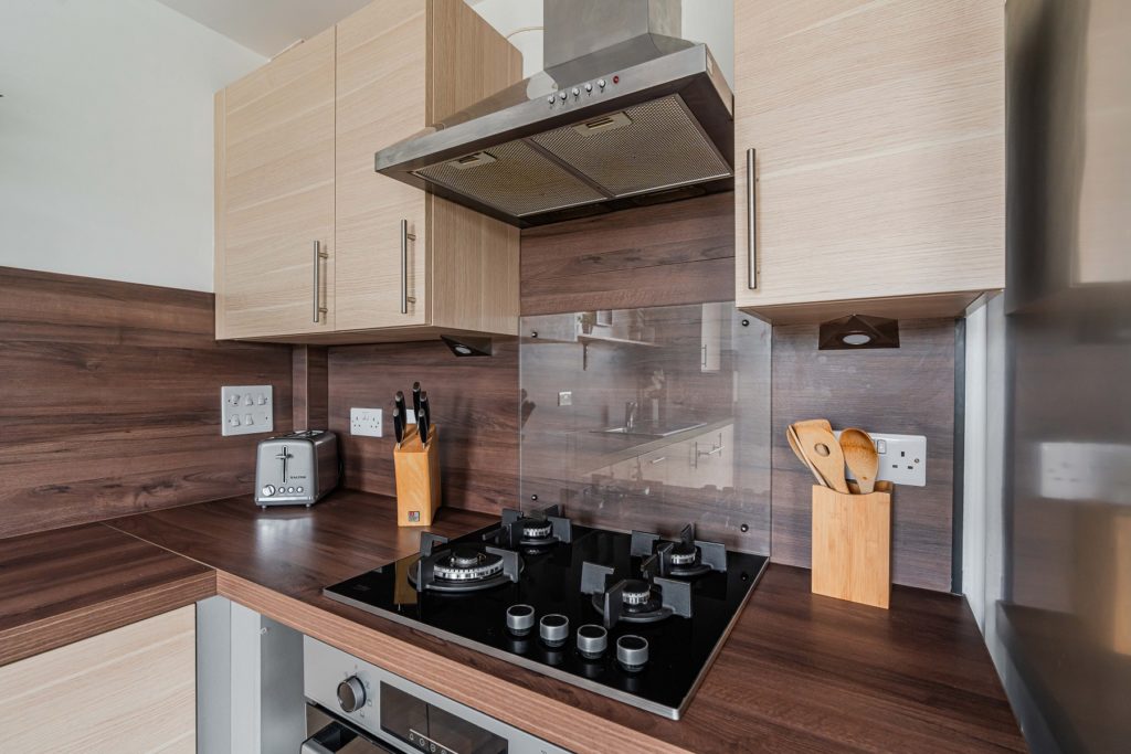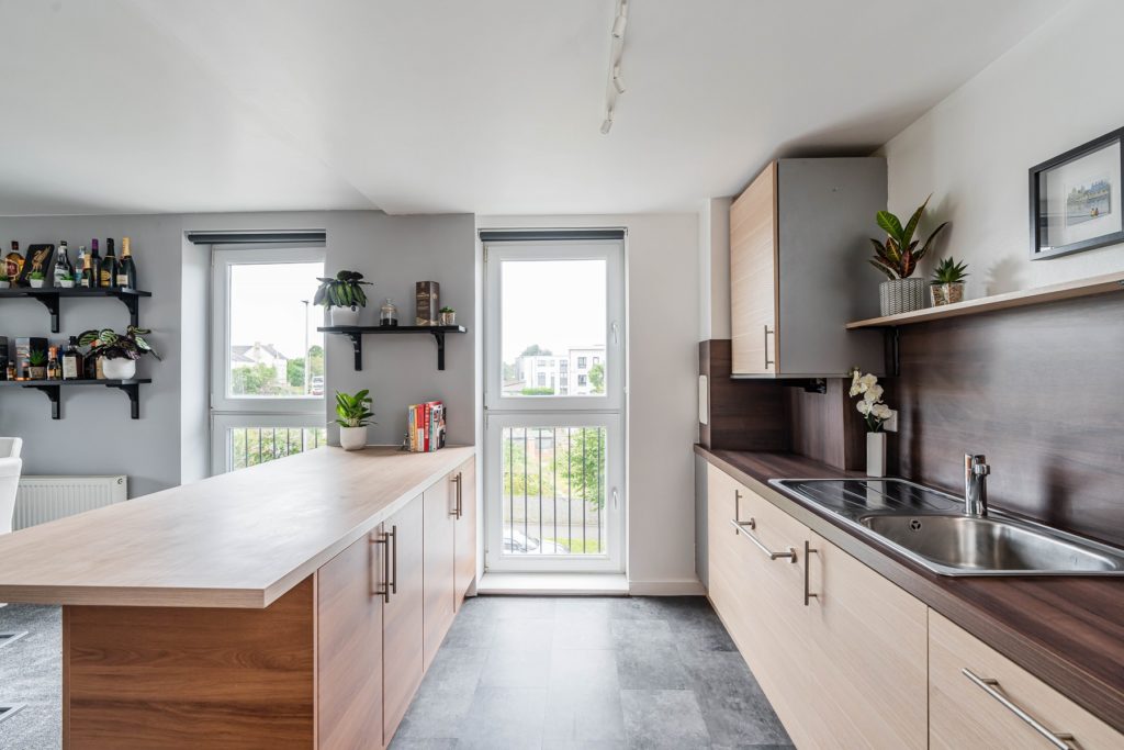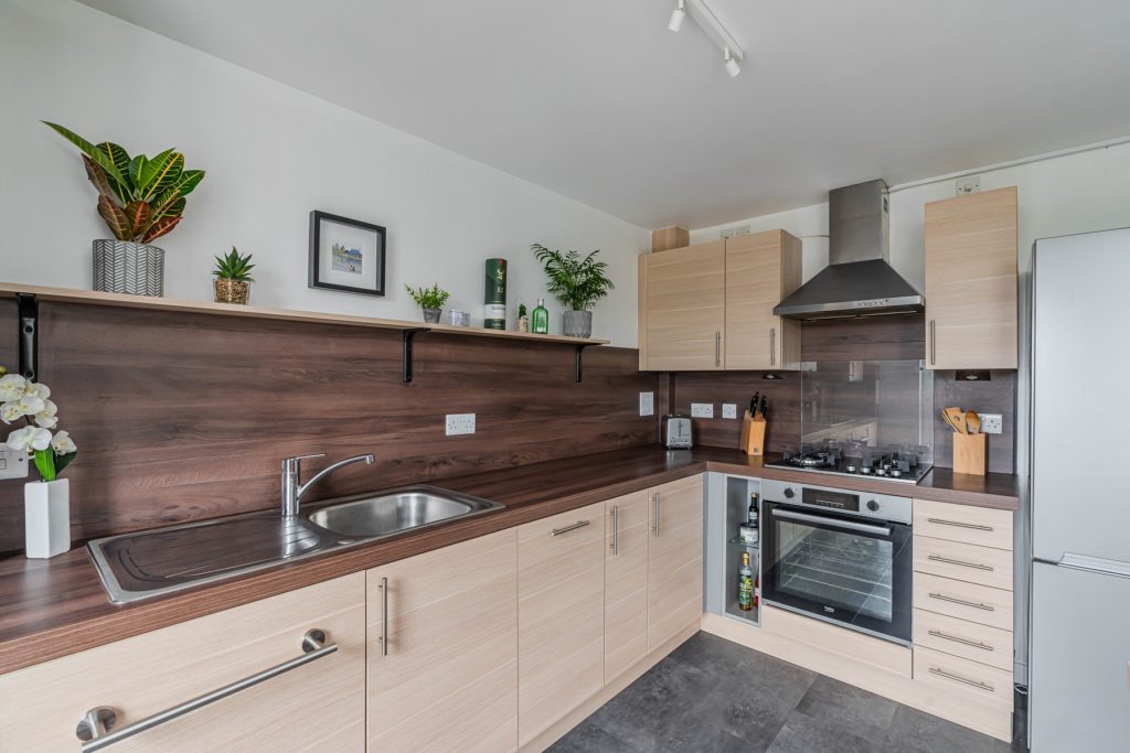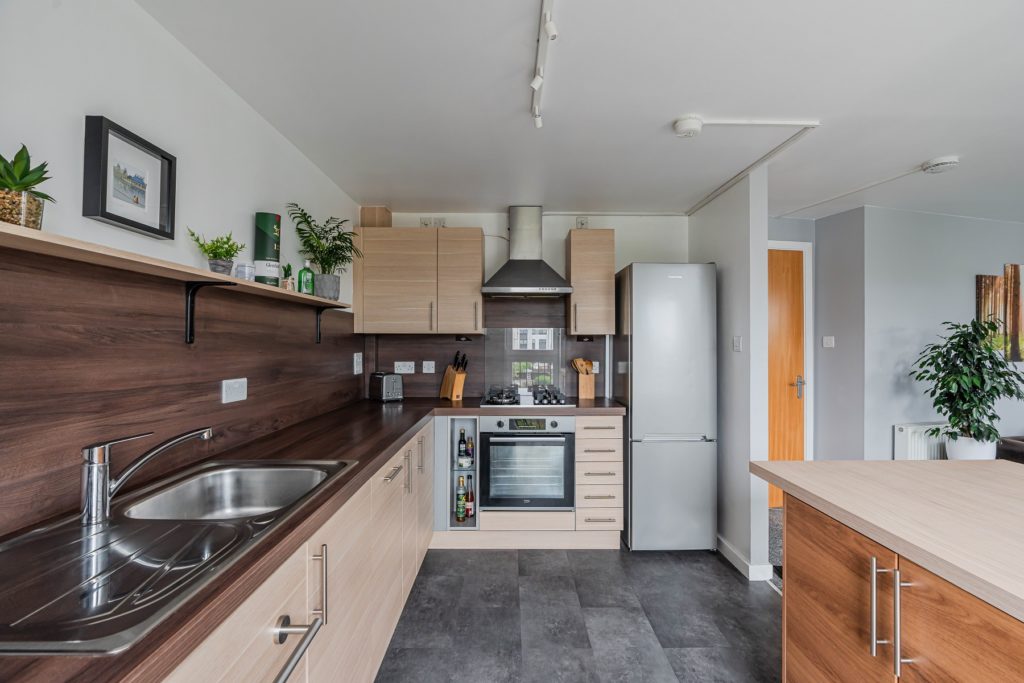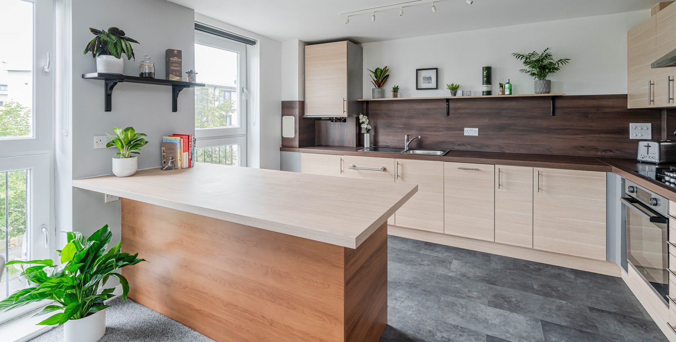 Location: Edinburgh Designer: Maria Zabihifard Collection: Caledonia Classic Kitchens Finish: Horizontal Laminate Woodgrain Budget: Under £15k