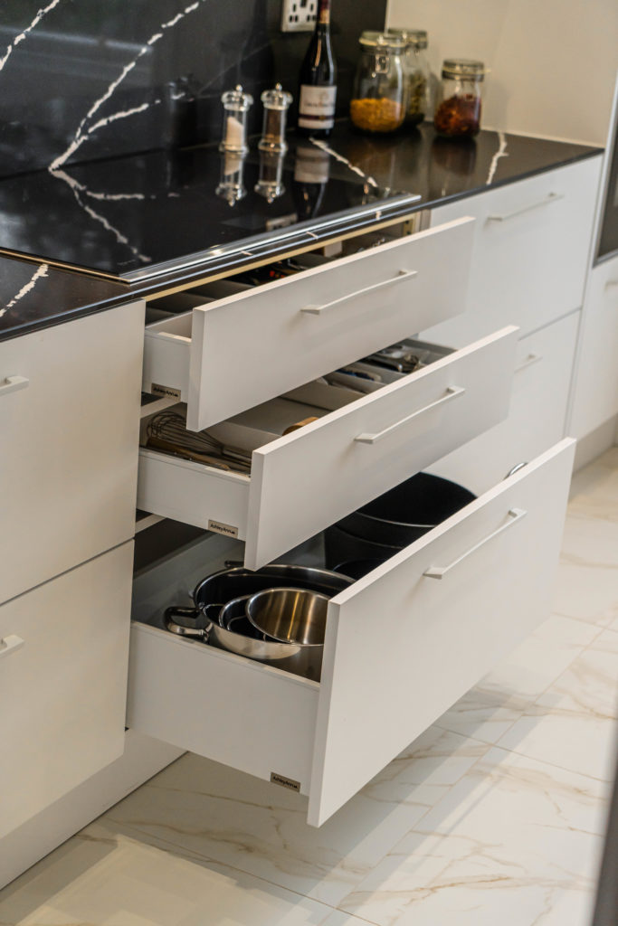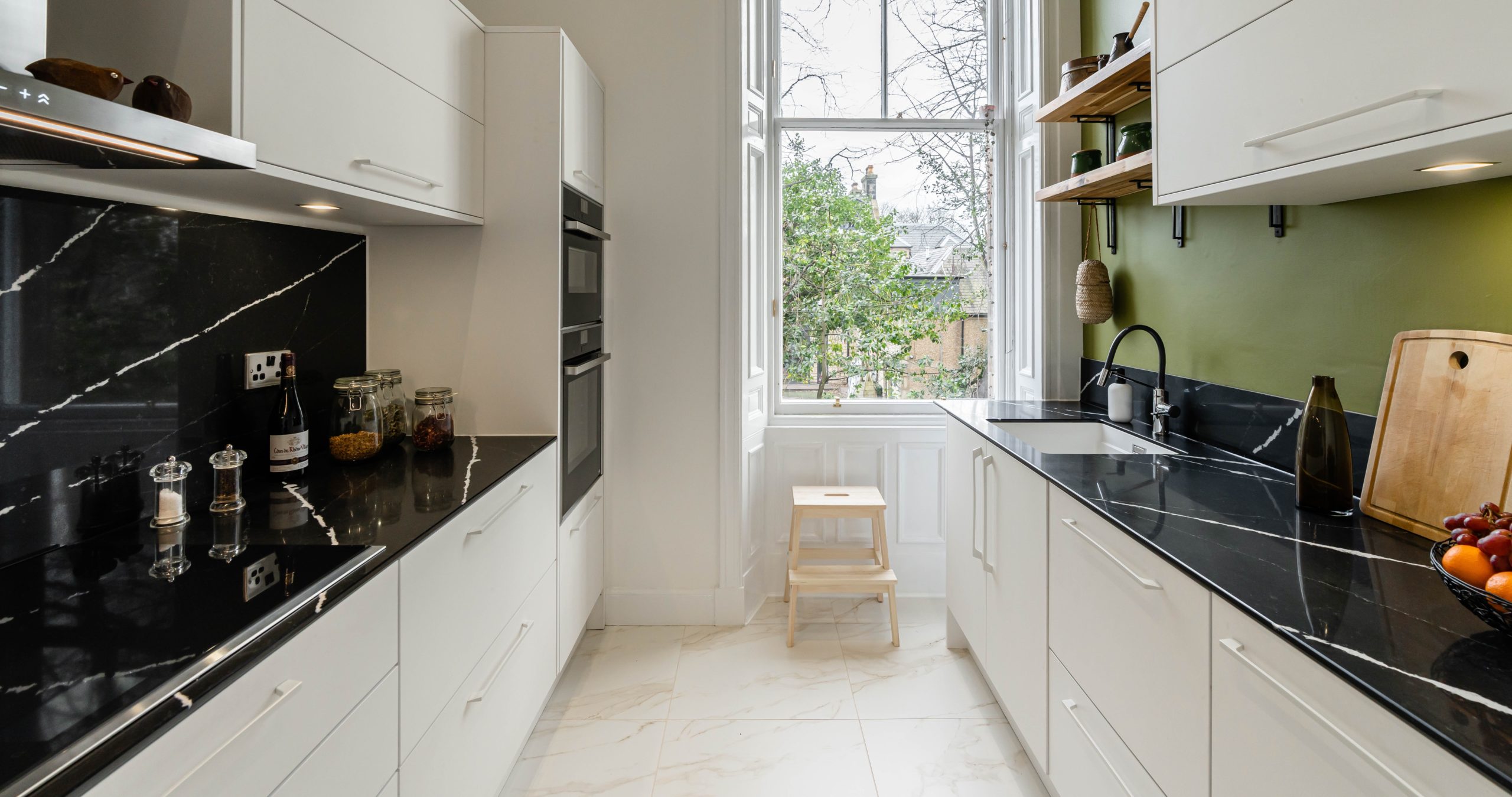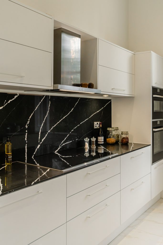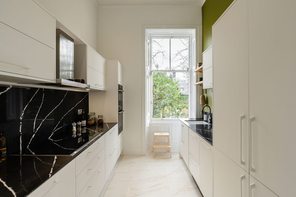 Location: Edinburgh Designer: Maria Zabihifard Collection: Caledonia Classic Kitchens Finish: Perfect Matt White Budget: £25 - £40K