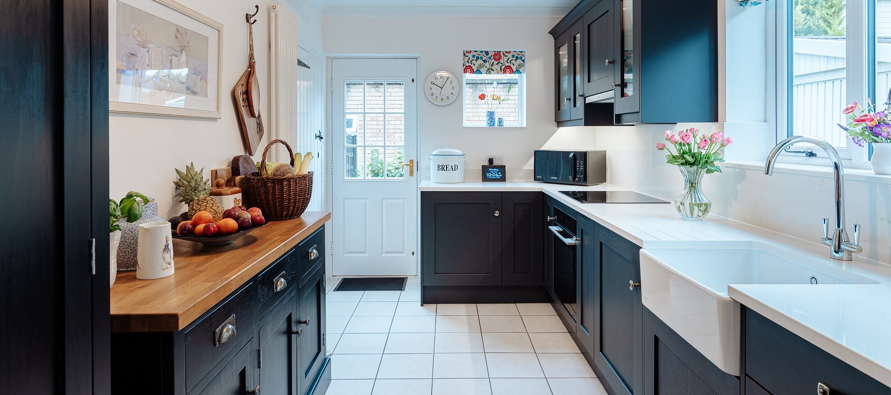 Location: Leek Designer: Allyson Lewis Collection: Caledonia Classic Kitchens Finish: Farrow and Ball Pitch Black Budget: £15 - £25K