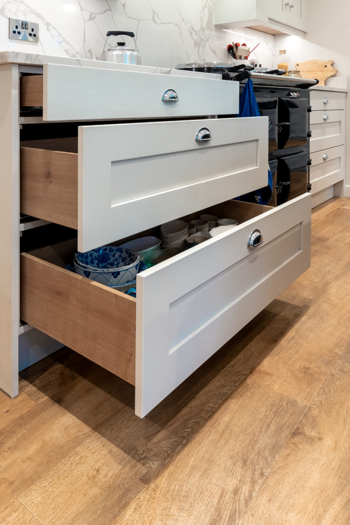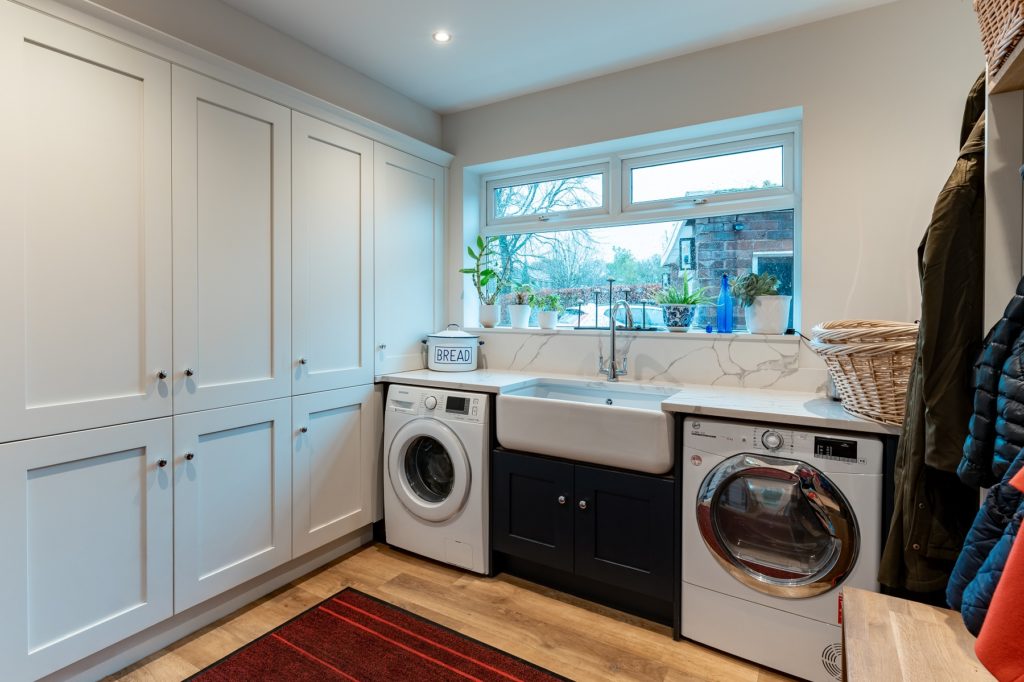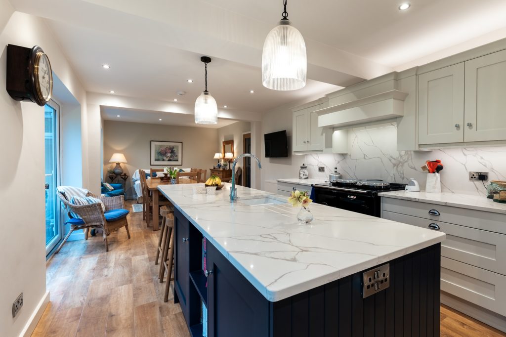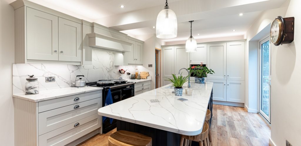 Location: Leek Designer: Allyson Lewis Collection: Caledonia Classic Kitchens Finish: Porcelain and Sumburgh Midnight Budget: Over £40K