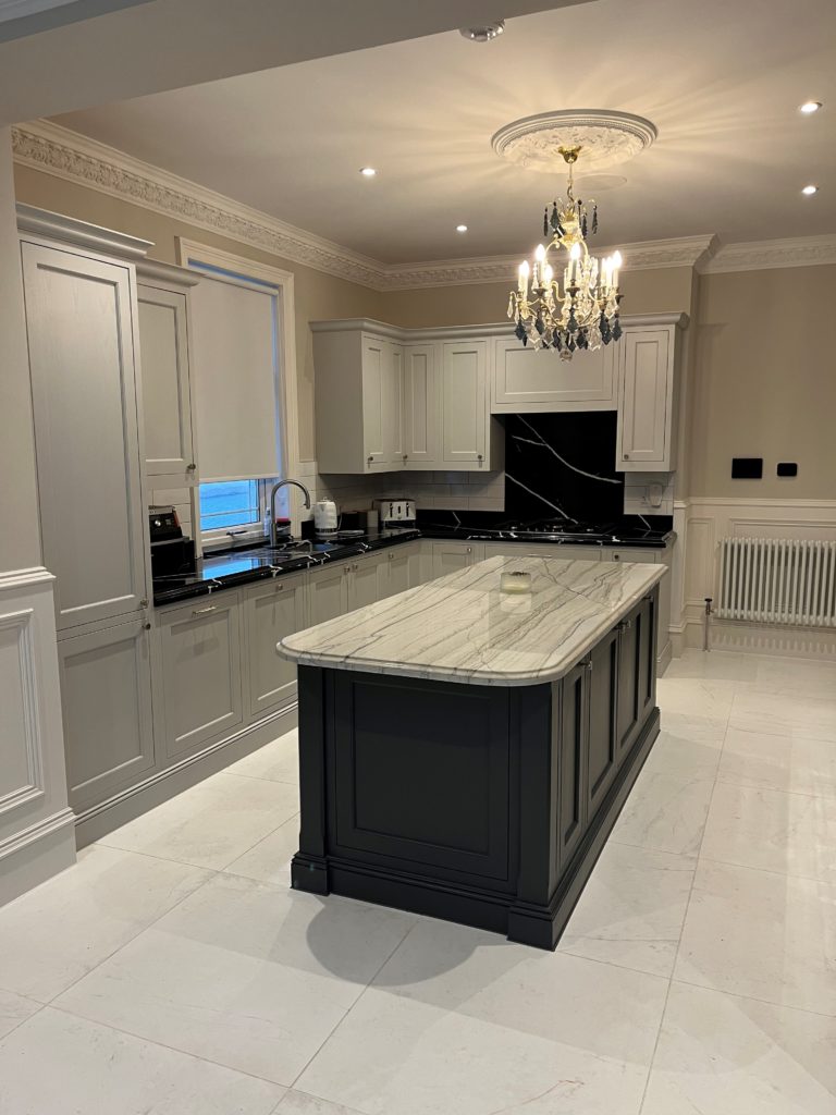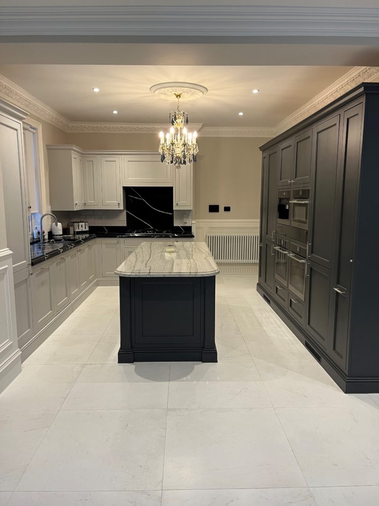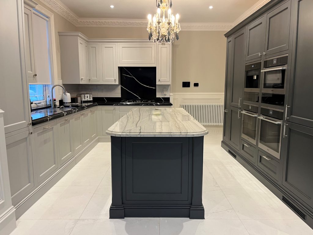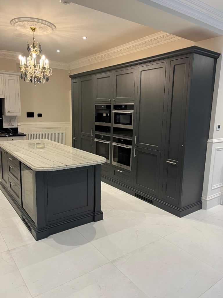 Location: Glasgow Designer: Gavin Loggie Collection: Caledonia In-Frame Kitchens Finish: Light Grey and Fired Charcoal Budget: Over £40K