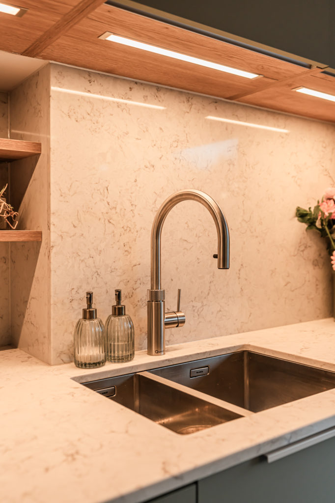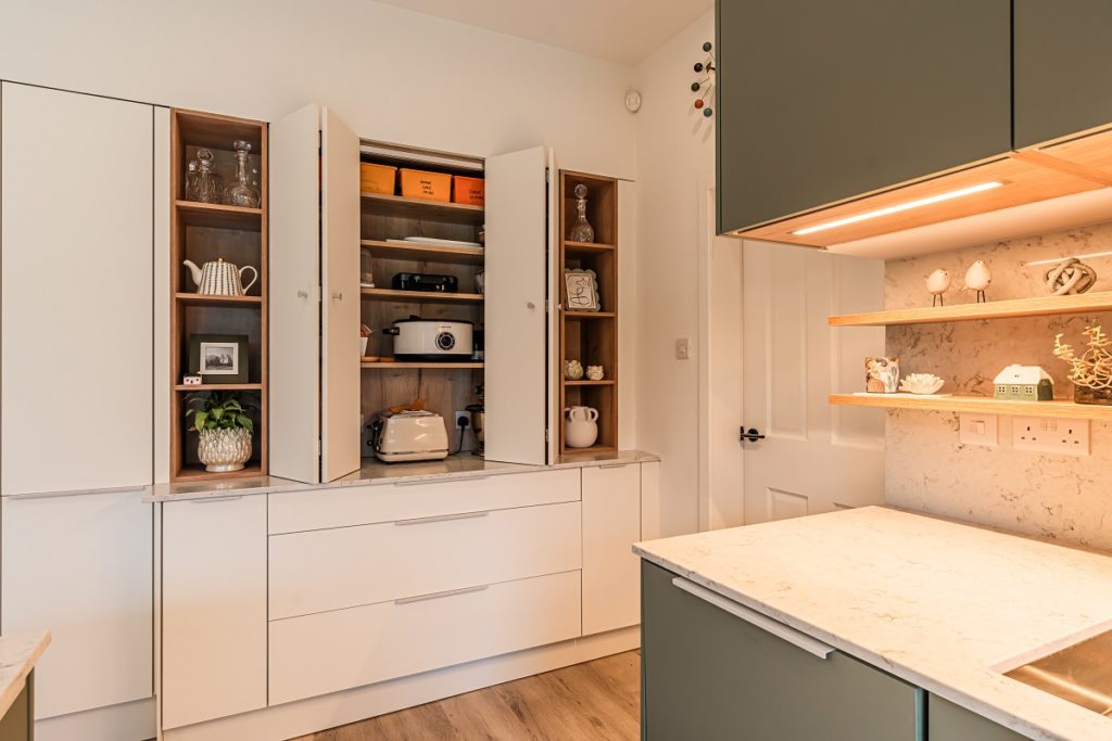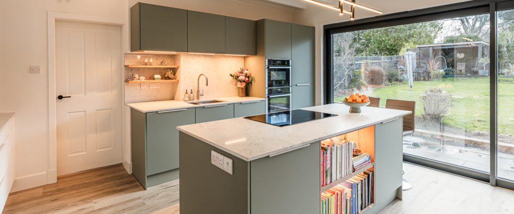 Location: Edinburgh Designer: Ella Ehsani Collection: Fusion Kitchens Finish: Olive and Alpine Budget: £25 - £40K