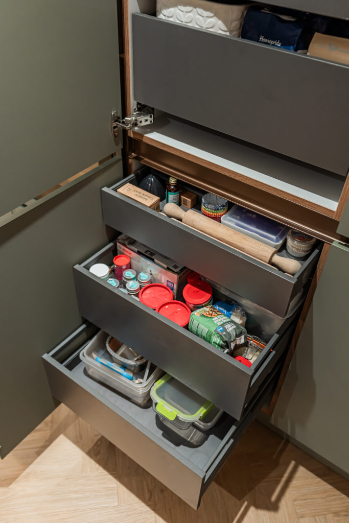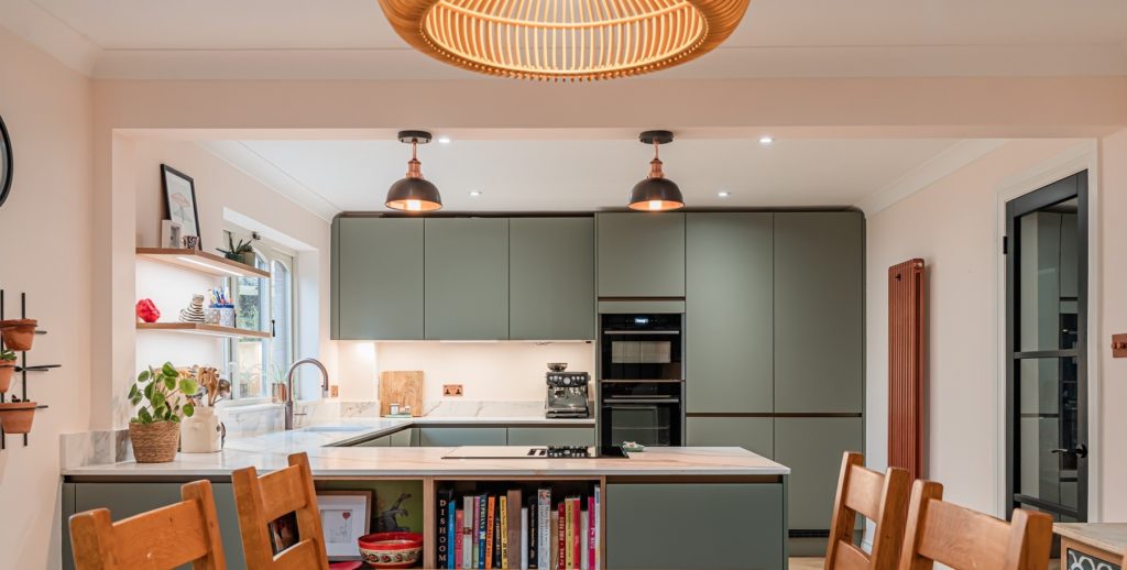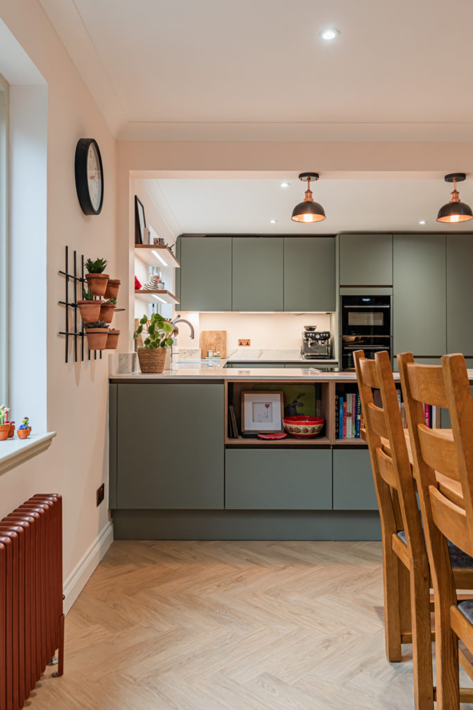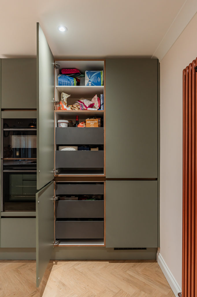 Location: Edinburgh Designer: Maria Zabihifard Collection: Fusion Kitchens Finish: Olive Budget: £25 - £40K