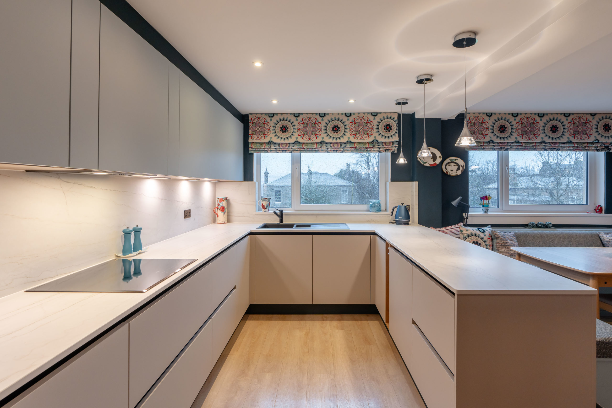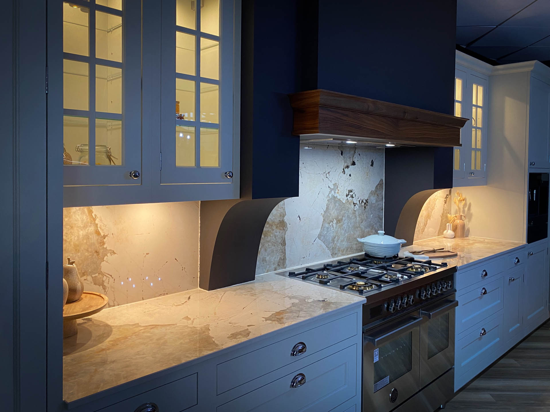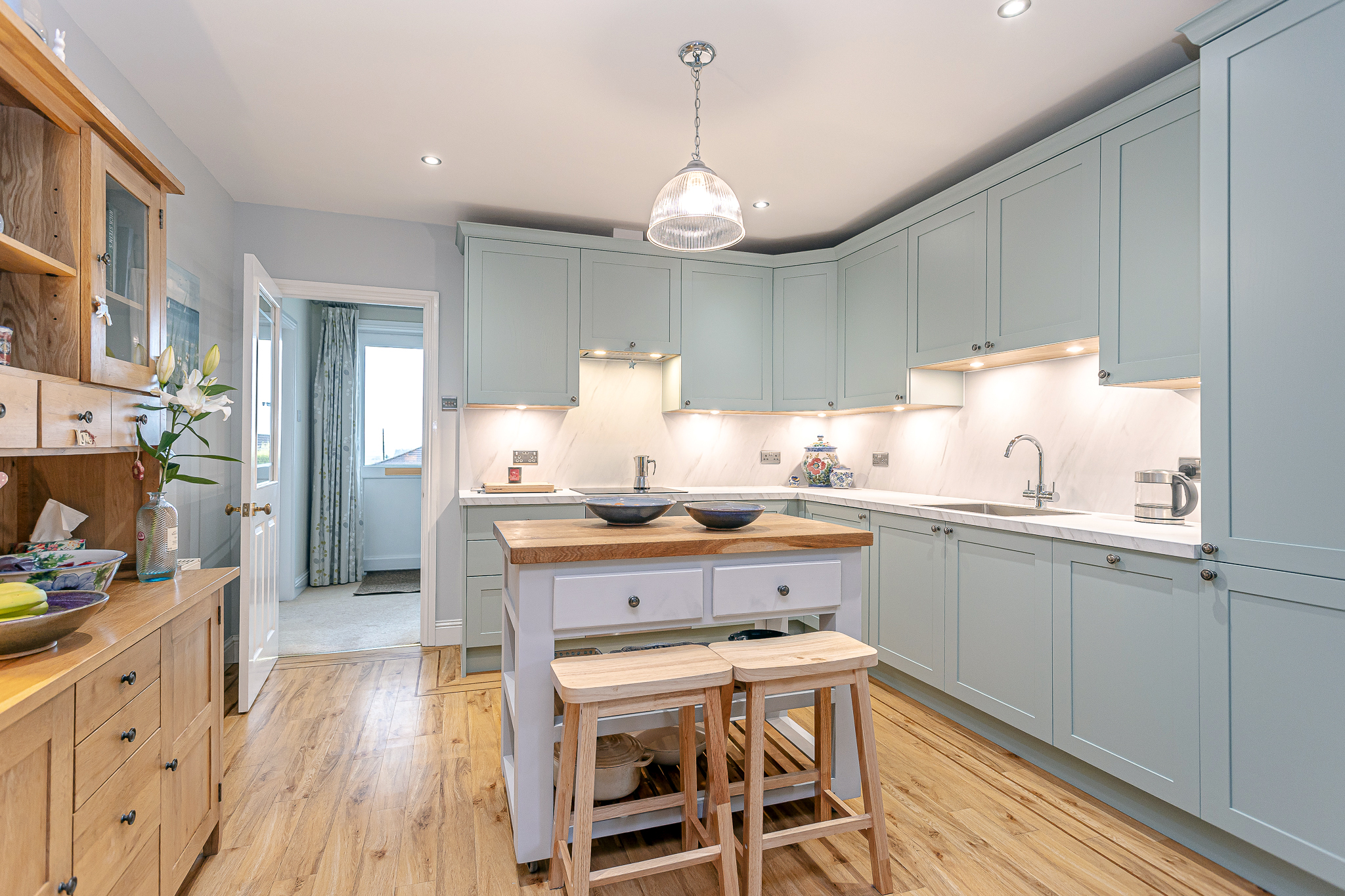 Functional Finesse: Task lighting is crucial in a kitchen. Bespoke lighting allows for strategically placed pendants, under-cabinet strips, and spotlights to ensure every work surface is well-lit, from chopping vegetables to reading recipes.